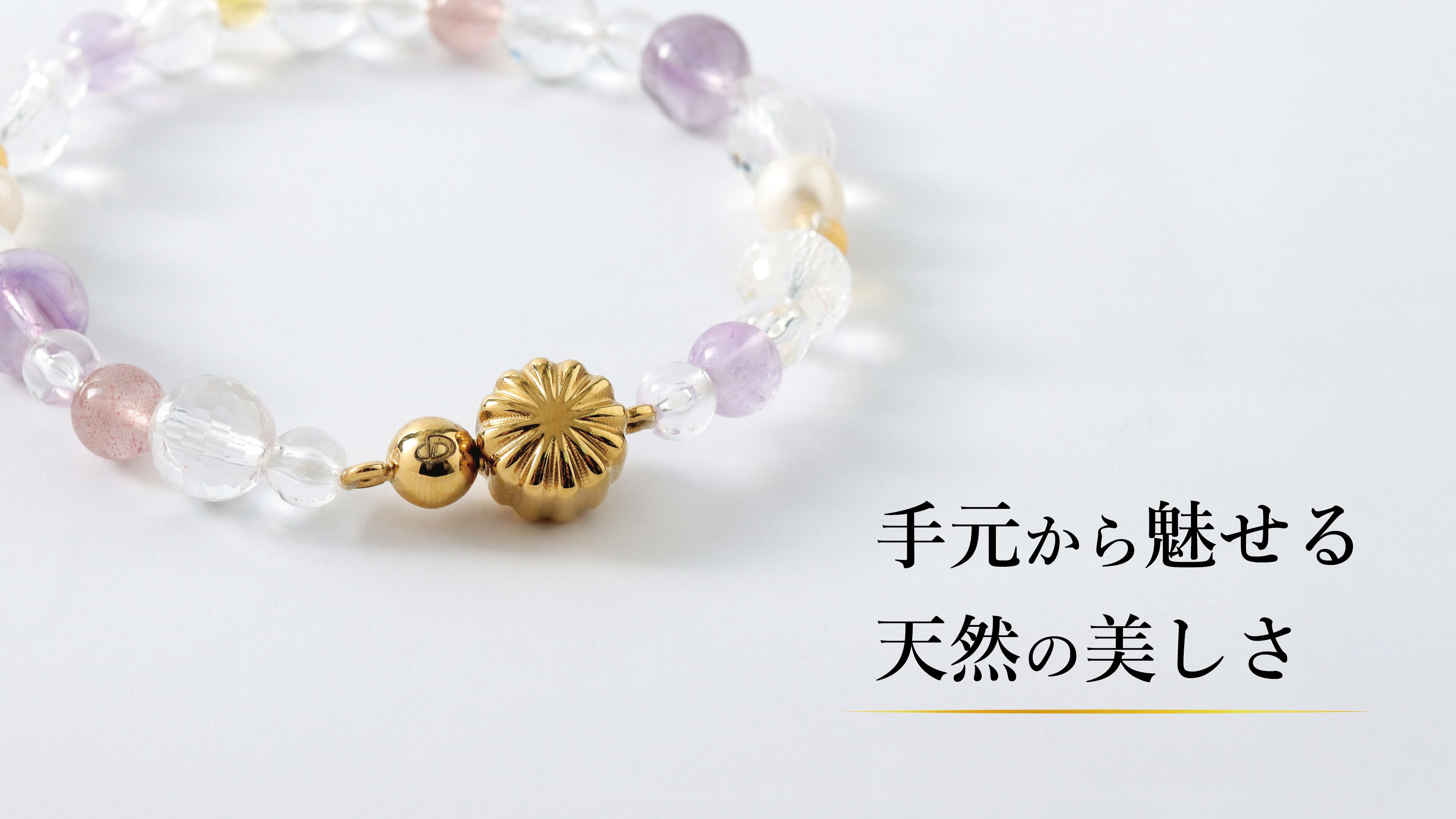 水晶とカラー天然石を組み合わせた上質なデザイン。